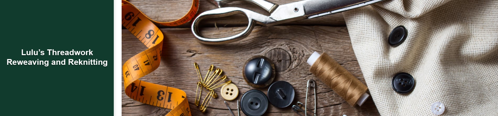 For more information about our tailoring services, contact Lulu's Threadwork Reweaving and Reknitting today! Hours after 5pm are appointment only.